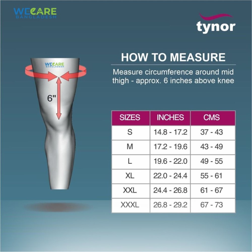 প্রতিটি Tynor প্রোডাক্টের সাইজ ভিন্ন হতে পারে। সঠিক সাইজ নির্বাচন করার জন্য, অনুগ্রহ করে ফিতা দিয়ে মাপ নিন এবং নিচের সাইজ চার্ট অনুযায়ী অর্ডার নিশ্চিত করুন অথবা সাইজ জানতে whatsapp করুন ।